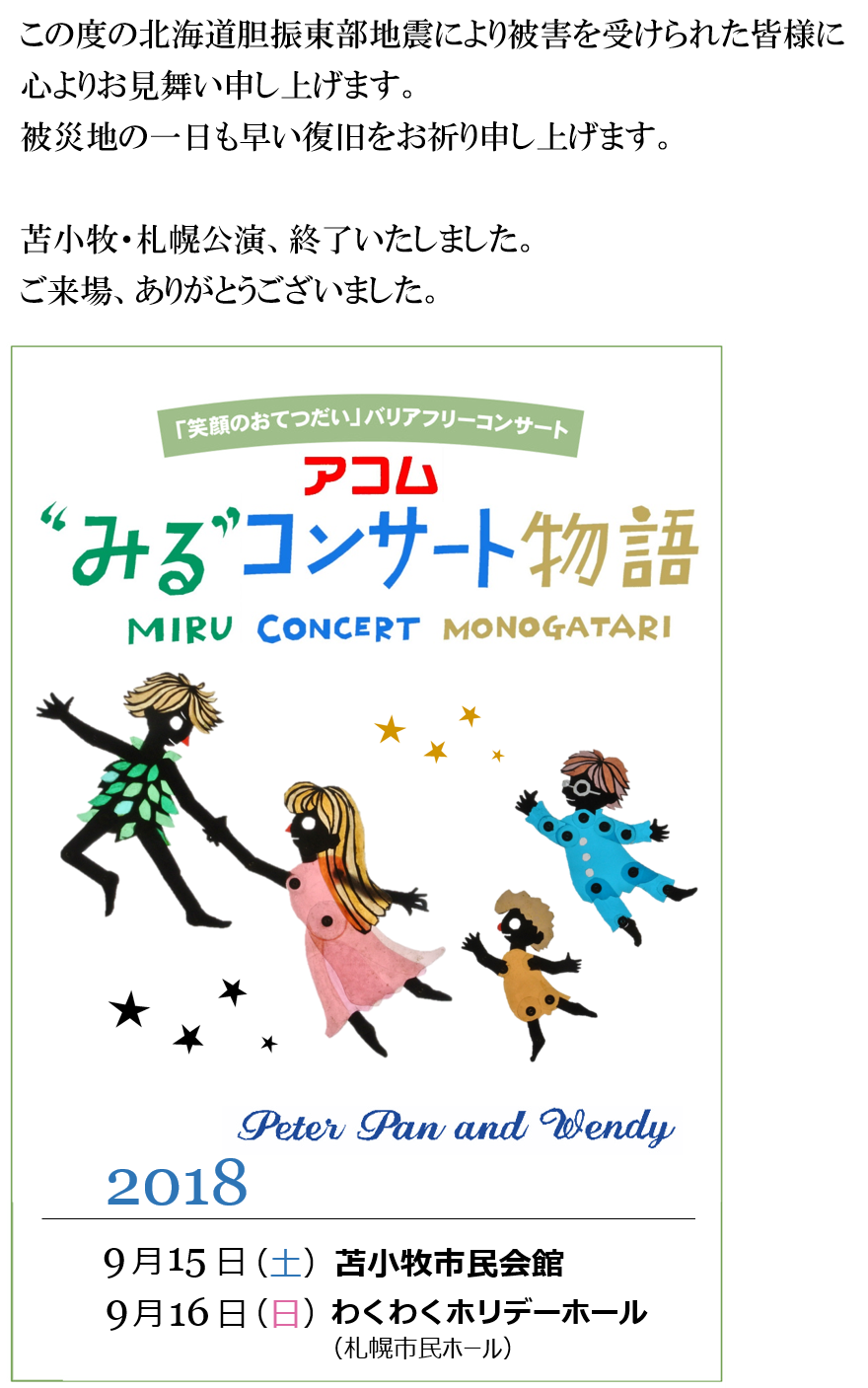 2018年9月 北海道 苫小牧公演/ 札幌公演 アコム “みる” コンサート物語